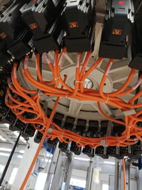 為了讓每個托盤都可以適應于各種瓶型,托盤均采用伺服電機進行角度和位置的調(diào)整-在機器上,多達30個甚至60個伺服系統(tǒng)來進行定位控制。由于機器空間緊湊,因此,采用了貝加萊的“背包電機”—它將伺服驅(qū)動器和電機集成于一體的ACOPOSmotor,它體積小,且支持多圈絕對值編碼器,記憶多圈位置。