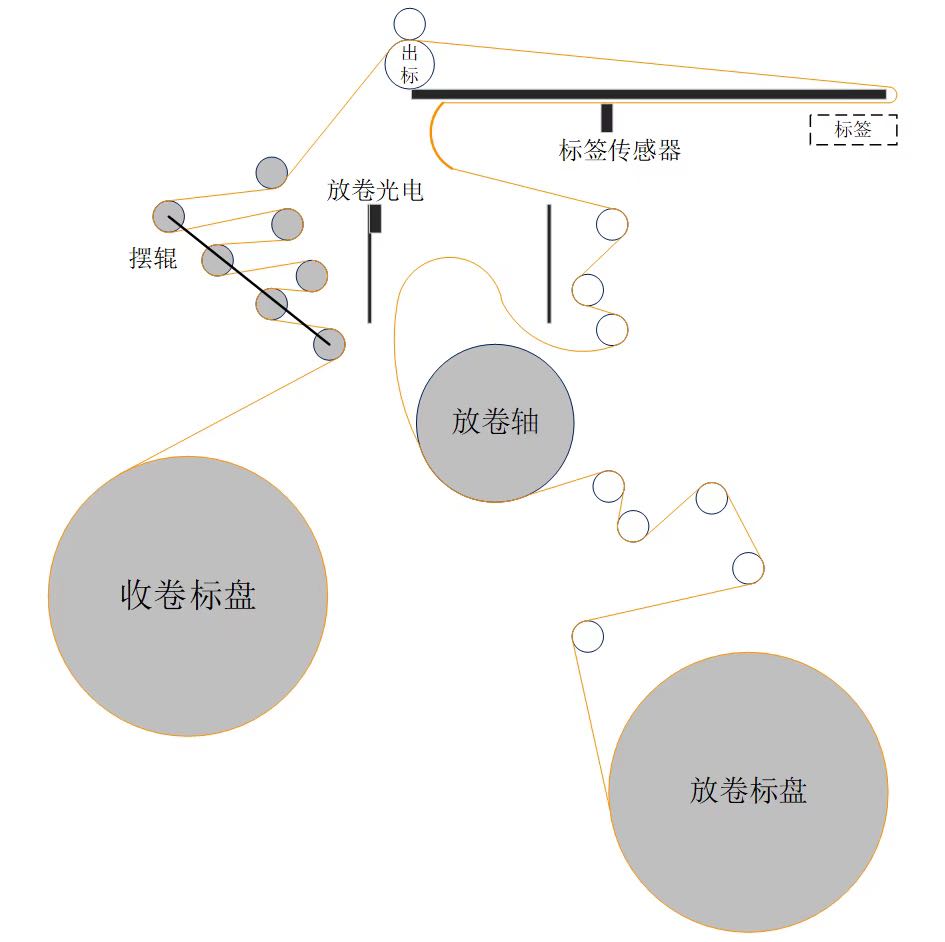 圖4是送標機構(gòu)的示意圖,它是將標簽放卷、牽引、送出、裁切的機構(gòu)構(gòu)成,可以由多種類型的標站,采用收放卷的高速運動控制技術(shù)來保障穩(wěn)定的張力,以為精準送標、切標提供保障。