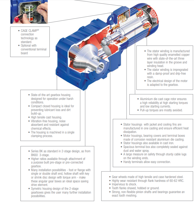 BG 系列減速電機是我們最暢銷和最經(jīng)濟合算的產(chǎn)品,為可靠性與經(jīng)濟性樹立了新標(biāo)準(zhǔn),其中包括諸多無與倫比的標(biāo)準(zhǔn)功能與特點。逆變器友好型設(shè)計不僅可確保目前輕松集成,而且還能滿足未來需求。標(biāo)配有確保與您的應(yīng)用輕松集成的英制或公制尺寸輸出軸。BG 減速電機擁有靈活的安裝選件,包括支腳、基座、表面與法蘭解決方案。電機接線盒可以安裝在圍繞電機架旋轉(zhuǎn) 90° 的其他位置,實現(xiàn)無與倫比的