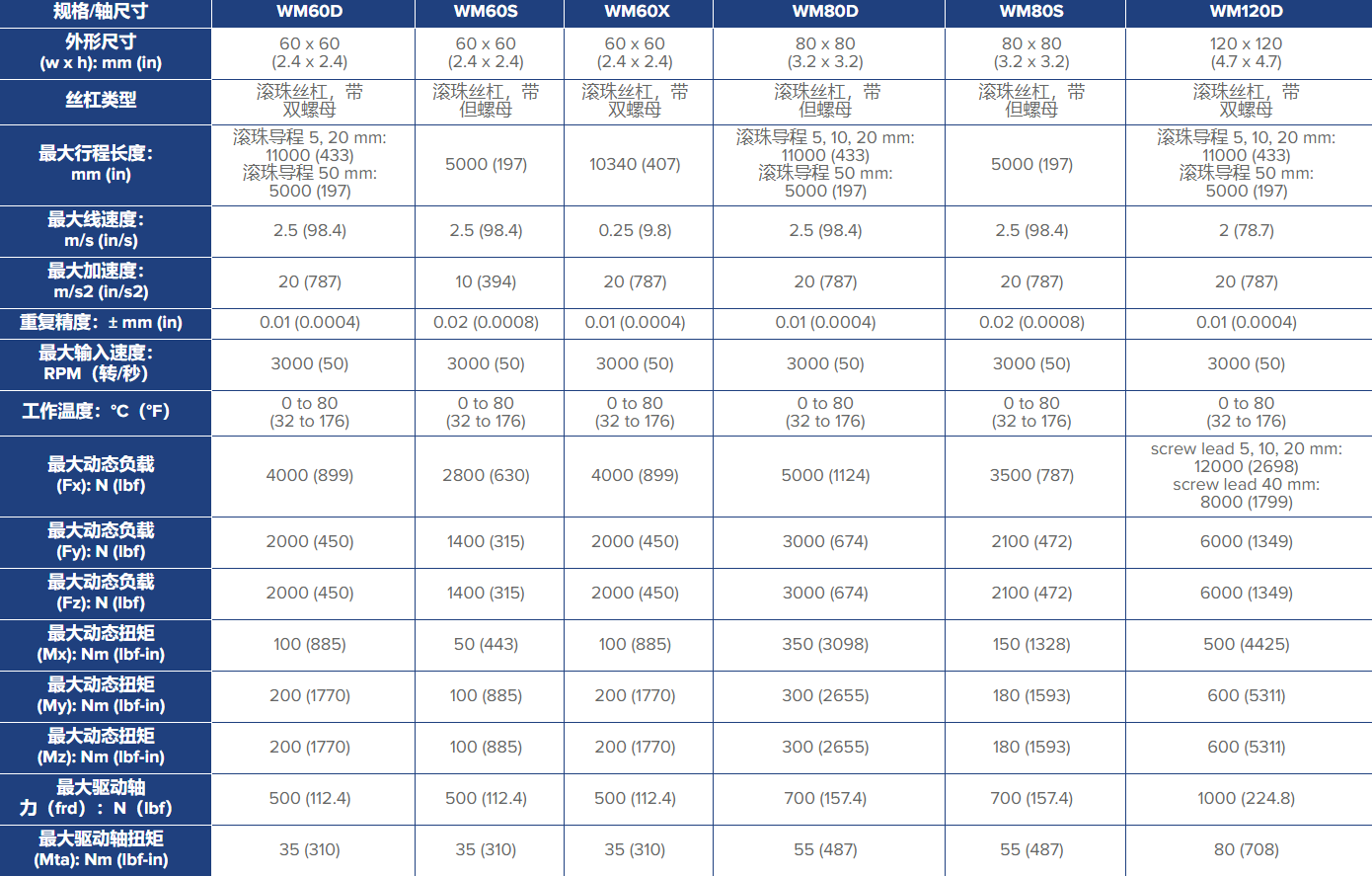 WM系列為需要?jiǎng)偠取傂院途鹊膽?yīng)用提供絲杠驅(qū)動(dòng)滾珠導(dǎo)向的運(yùn)動(dòng)。MLSM采用寬軸承結(jié)構(gòu),具有高力矩負(fù)載。WV單元類(lèi)似于WM單元,但需搭配外部軸承導(dǎo)軌使用。WMZ單元是一種負(fù)載能力更高的WM軸承系統(tǒng),但采用皮帶驅(qū)動(dòng),速度更高。